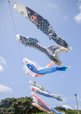 日本では男の子がいる家では「鯉のぼり」を立ててお祝いをします。こどもの健やかな成長を祈ります。