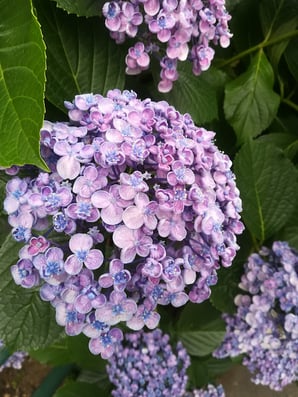 くるくるっと丸いのが特徴的なポップコーンという品種のあじさいです。