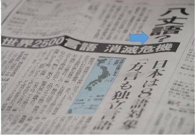 じつは、雑談で方言サミットのことで盛り上がったのには理由がありました。2009年のユネスコの発表は、日本では朝日新聞の夕刊で最初に記事になりました。この時の1面の見出しが「八丈語?」だったのです。