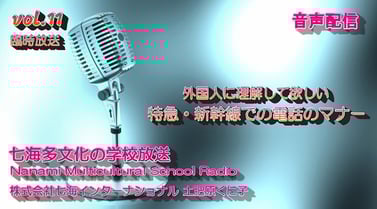 今回の話題は、日本情報 七海多文化の学校放送vol.11臨時放送「外国人に理解して欲しい。特急・新幹線での電話のマナー」です。