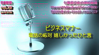 今回の話題は、日本情報 七海多文化の学校放送vol.18臨時放送「ビジネスマナー 電話の応対 嬉しかったひと言」をアップしましたについてです。