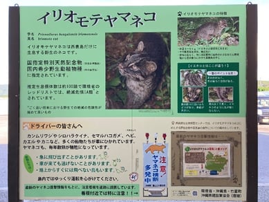 Iriomote wildcat driving caution map. Drivers are warned to be careful.