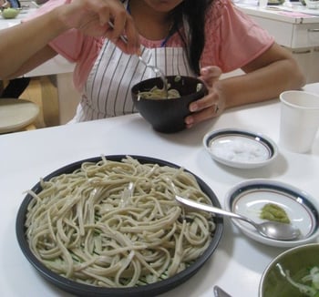The photo shows a scene from a "hands-on soba making class”.