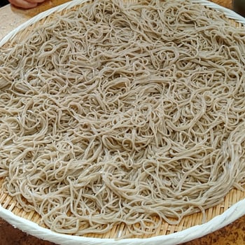 Seaweed "funori" is added as a binder for buckwheat noodles.